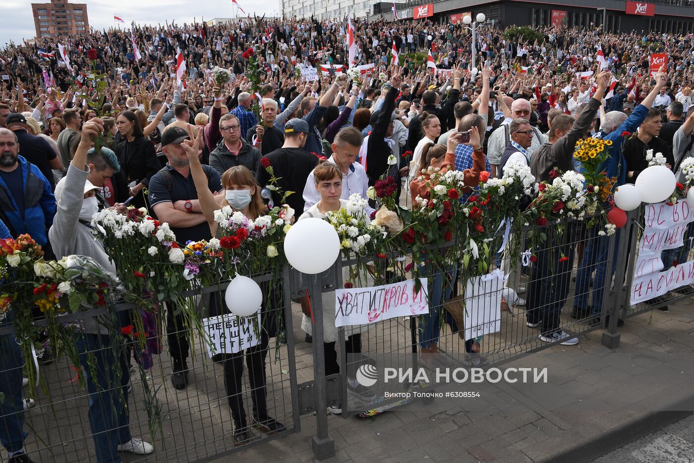 Участники акции протеста у метро "Пушкинская" в Минске.