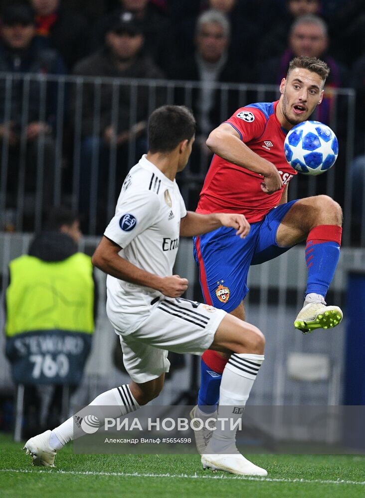 Игрок ПФК ЦСКА Никола Влашич (справа) в матче группового этапа Лиги чемпионов УЕФА между ПФК ЦСКА (Россия, Москва) и ФК "Реал" (Испания, Мадрид).