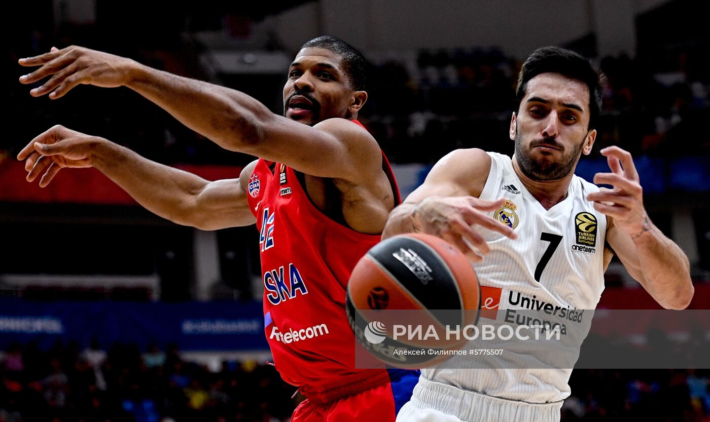Игрок БК "Реал" Факундо Кампаццо и игрок ПБК ЦСКА Кайл Хайнс (слева) в матче регулярного чемпионата Евролиги сезона 2018/2019 между ПБК ЦСКА (Москва, Россия) и БК "Реал" (Мадрид, Испания).