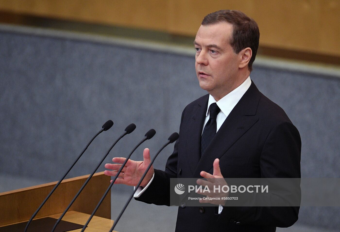 17 апреля 2019. Председатель правительства РФ Дмитрий Медведев выступает в Государственной Думе РФ с отчётом правительства РФ о результатах деятельности за 2018 год.