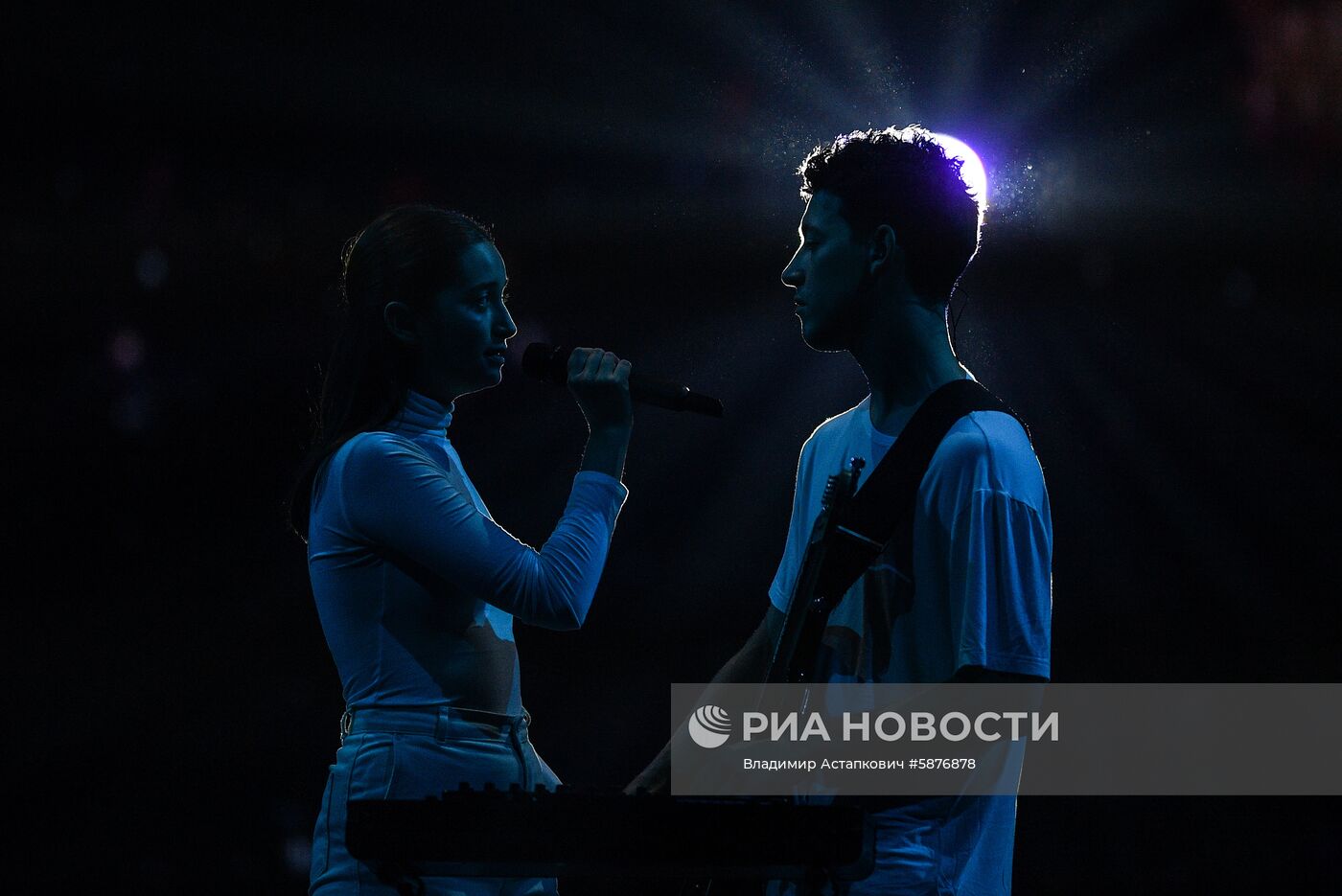 Представители Словении Зала Краль и Гашпер Шантл выступают с песней Sebi на репетиции первого полуфинала Международного конкурса песни "Евровидение-2019" в Тель-Авиве.