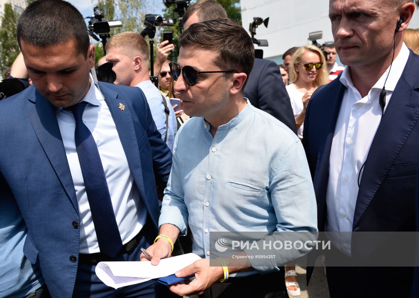 Президент Украины Владимир Зеленский у избирательного участка в Киеве в день досрочных выборов в Верховную раду Украины.