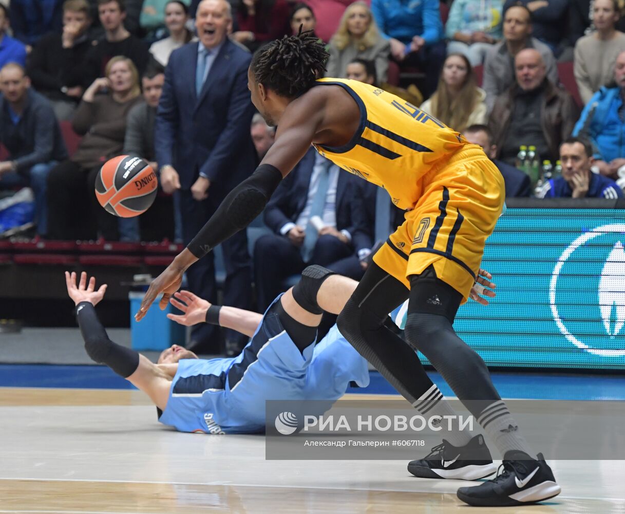 Игрок "Зенита" Матеуш Понитка (слева) и игрок "Химок" Джереми Эванс в матче 7-го тура регулярного чемпионата мужской баскетбольной Евролиги сезона 2019/2020 между БК "Зенит" (Санкт-Петербург, Россия) и БК "Химки" (Химки, Россия).