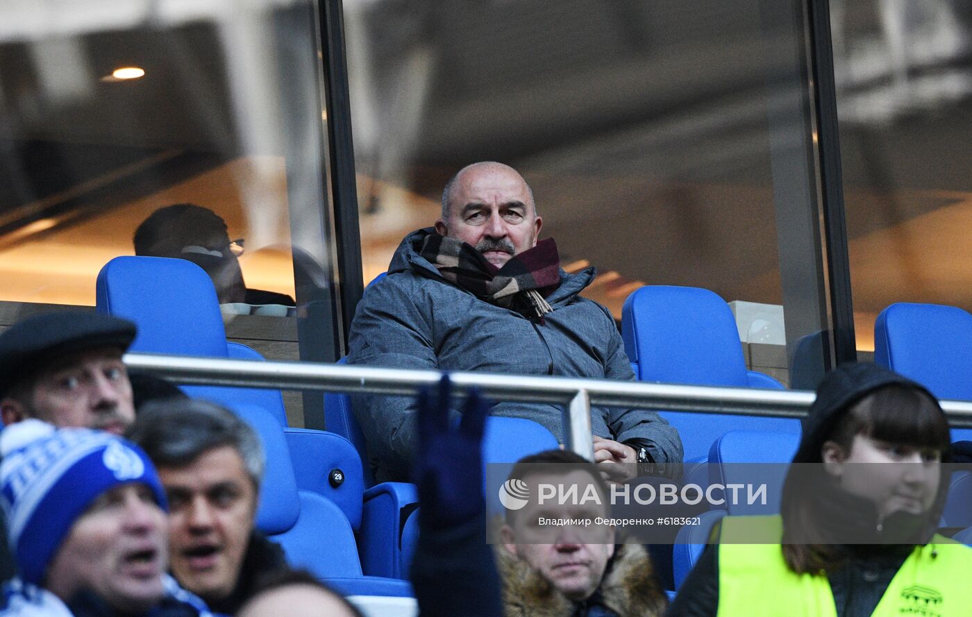Главный тренер сборной России по футболу Станислав Черчесов на зрительской трибуне перед началом матча 20-го тура чемпионата России по футболу среди клубов Премьер-лиги между ФК "Динамо" (Москва) и ФК "Спартак" (Москва).