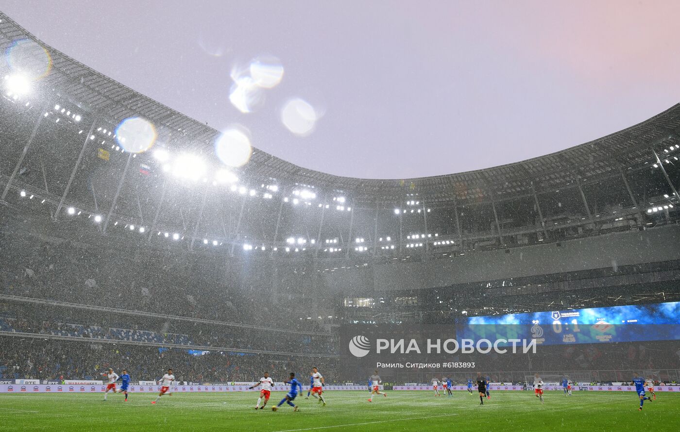 Снегопад во время матча 20-го тура чемпионата России по футболу среди клубов Премьер-лиги между ФК "Динамо" (Москва) и ФК "Спартак" (Москва).