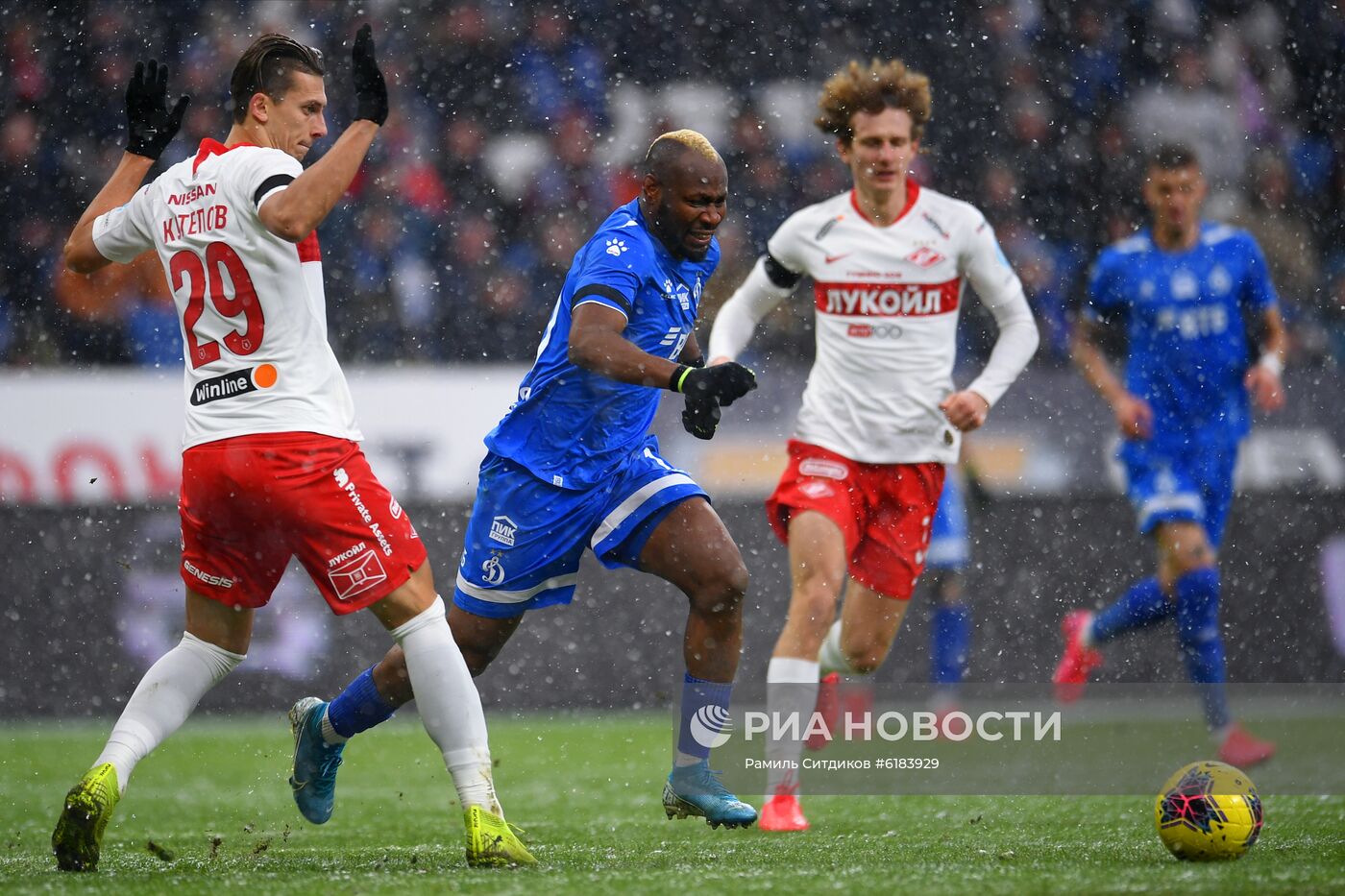 Игрок ФК "Спартак" Илья Кутепов, игрок ФК "Динамо" Сильвестр Игбун и игрок ФК "Спартак" Алекс Крал (слева направо) в матче 20-го тура чемпионата России по футболу среди клубов Премьер-лиги между ФК "Динамо" (Москва) и ФК "Спартак" (Москва).