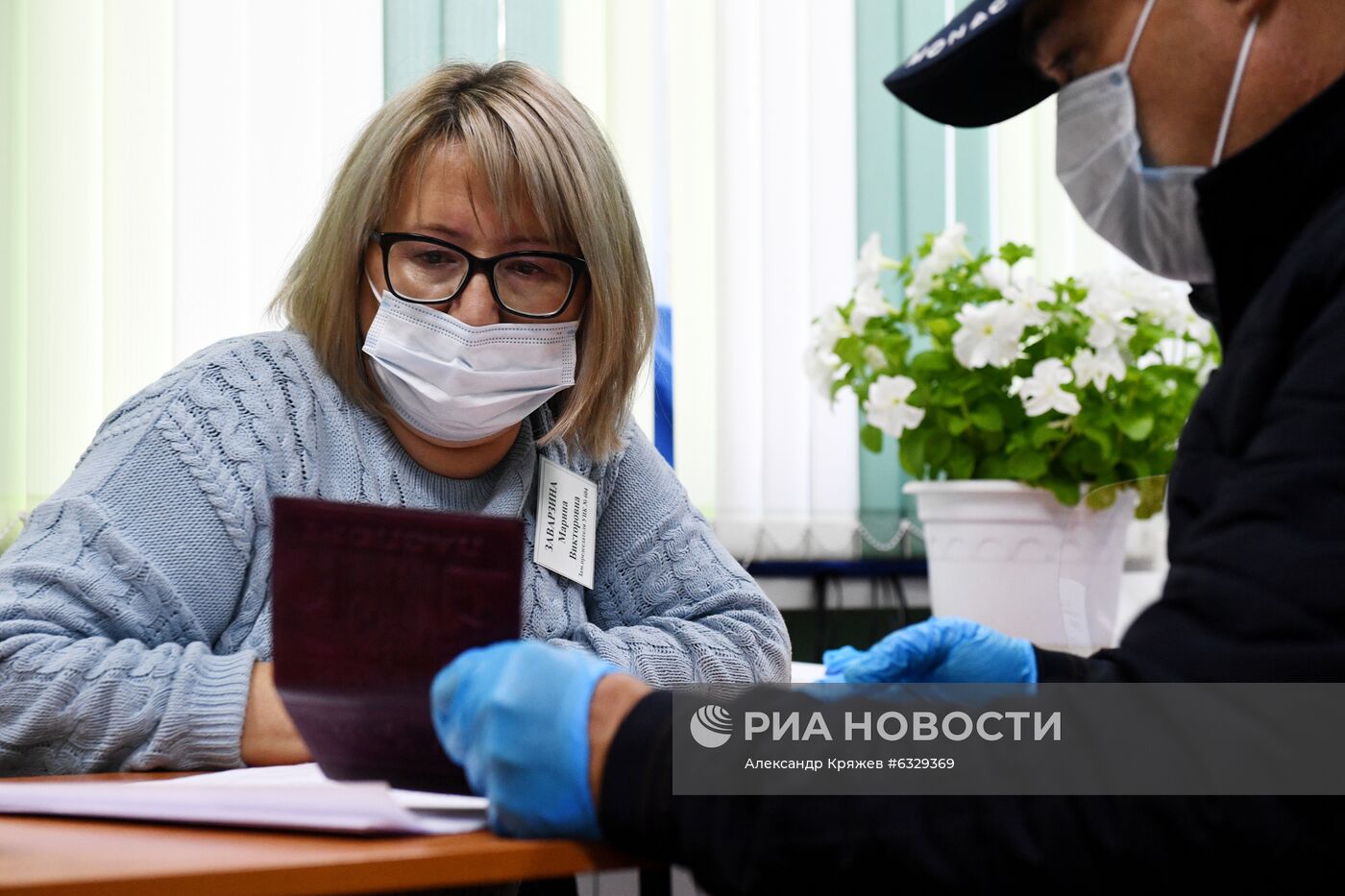 Мужчина досрочно голосует на выборах губернатора Иркутской области на избирательном участке №604 в Иркутске.