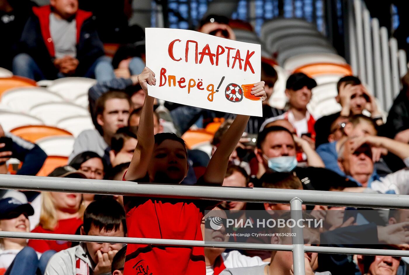 Зрители на трибуне во время матча 9-го тура чемпионата России по футболу среди клубов Премьер-лиги между командами ФК "Тамбов" (Тамбов) и ФК "Спартак" (Москва). Изображение является раздаточным материалом, предоставлено третьей стороной. Только редакционное использование. Запрет на архивирование, коммерческое использование, рекламную кампанию.