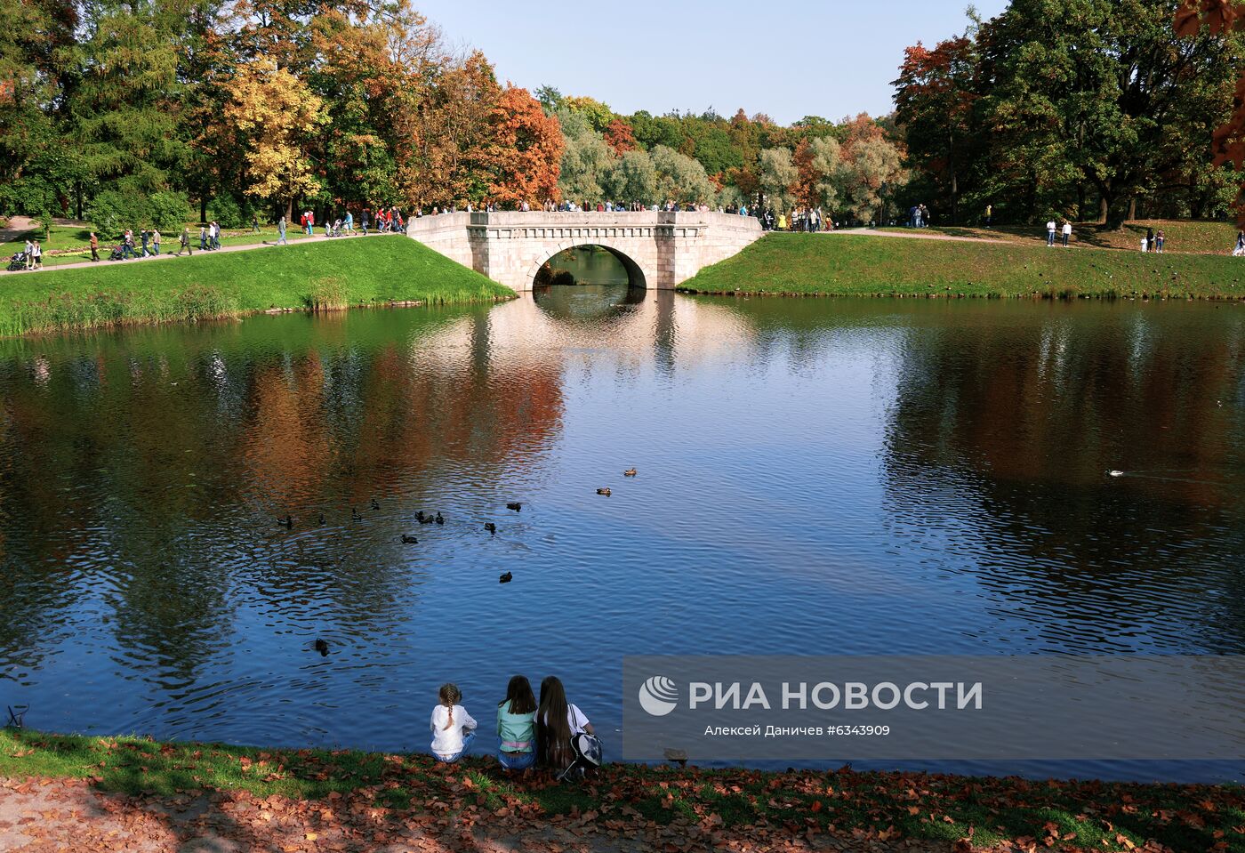 Отдыхающие на территории музея-заповедника "Гатчина" в Ленинградской области.