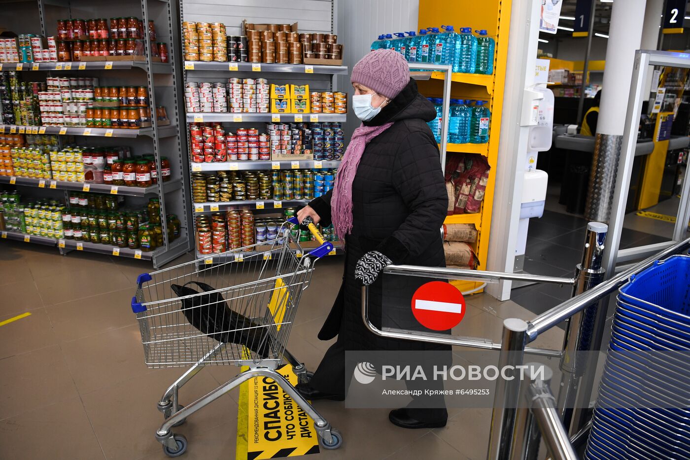 Женщина в дискаунтере "365+" торговой сети "Лента" в Новосибирске.