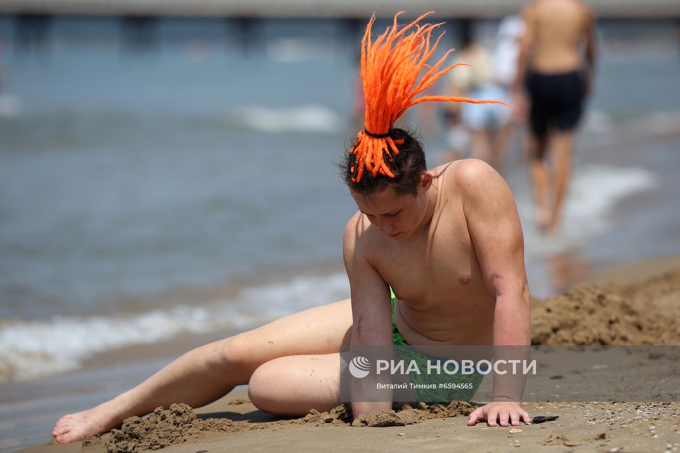 Подросток на пляже Всероссийского детского центра (ВДЦ) "Орлёнок" в Туапсинском районе Краснодарского края. 12 июля 2021 года Всероссийскому детскому центру "Орлёнок" исполняется 61 год.