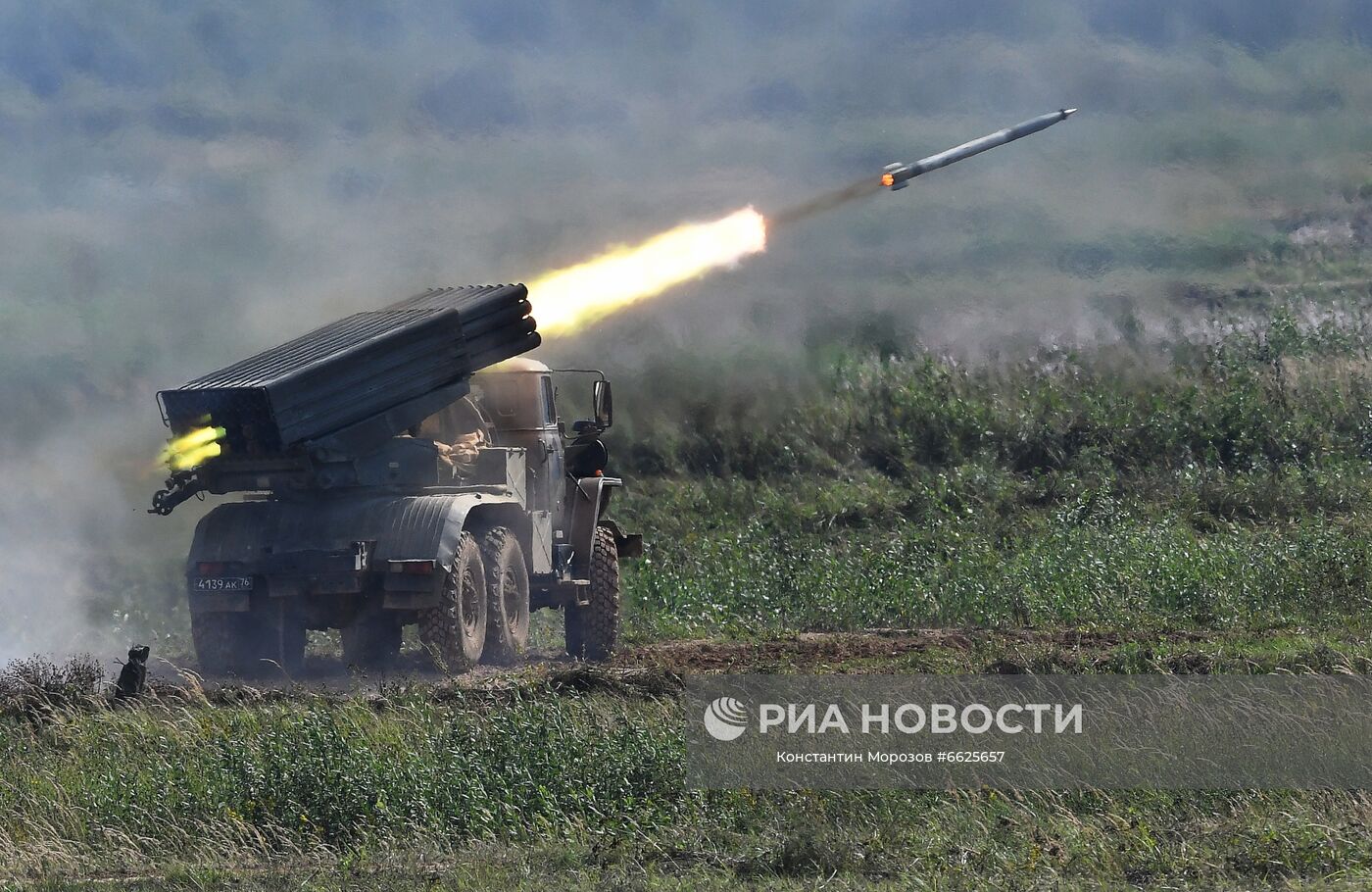 Оперативно-тактический ракетный комплекс (ОТРК) "Искандер-М (слева на первом плане) и пусковая установка зенитно-ракетного комплекса C-300 (справа дальнем плане) во время генеральной репетиции динамического показа вооружений, военной и специальной техники в рамках Международного военно-технического форума (МВТФ) "Армия-2021" на полигоне "Алабино" в Московской области.в заголовке написано