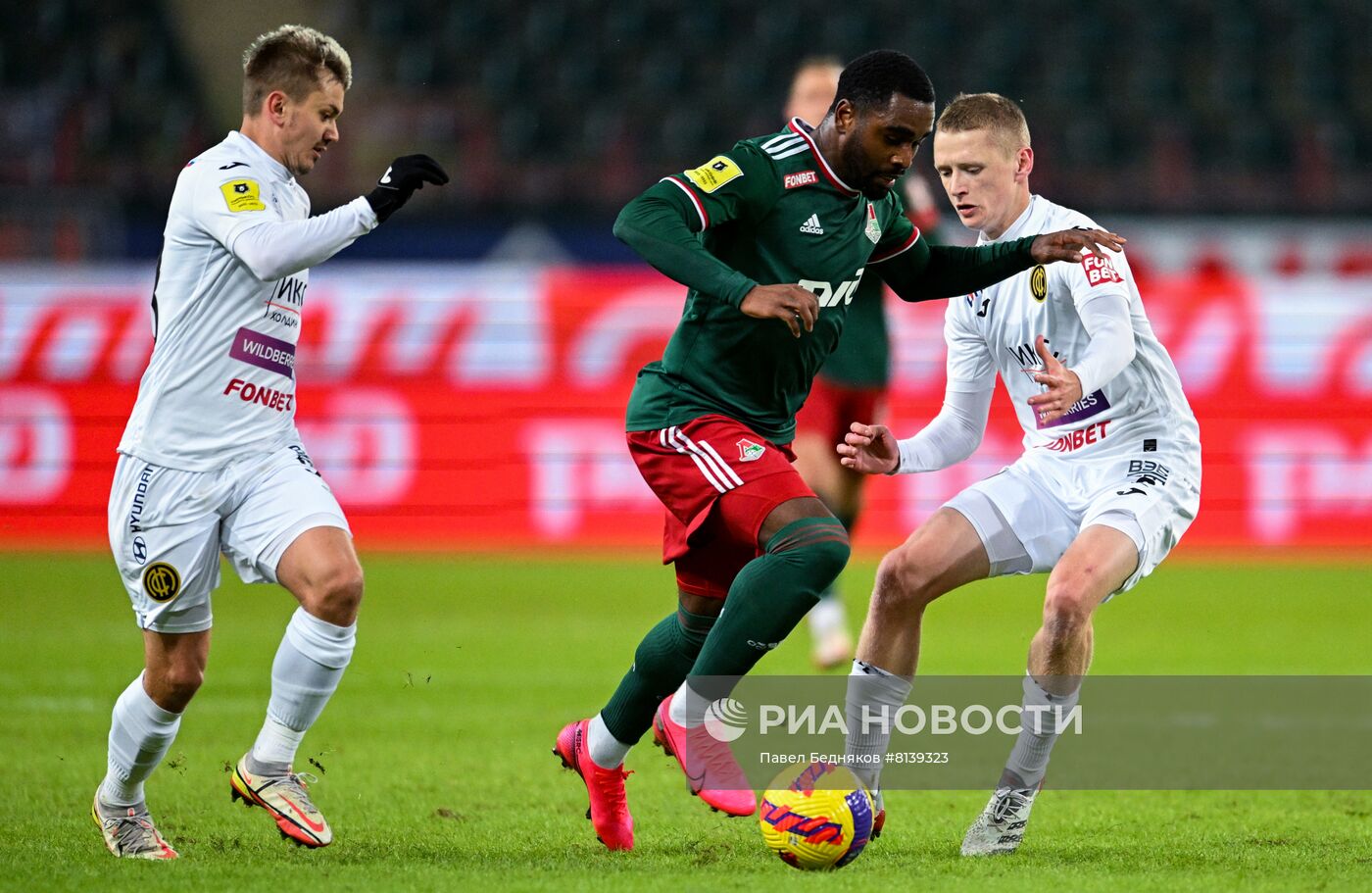 Игрок ЦСКА Иван Обляков, игрок "Локомотива" Гирано Керк и игрок ЦСКА Максим Мухин (слева направо) в матче 21-го тура чемпионата России по футболу среди клубов Премьер-лиги между командами ФК "Локомотив" (Москва) и ПФК ЦСКА (Москва).