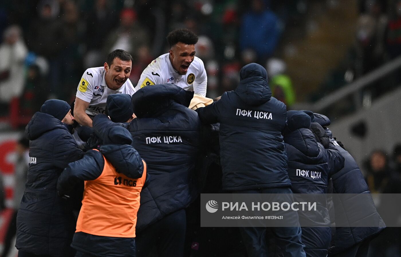 Игроки и тренеры ЦСКА радуются забитому голу в матче 21-го тура чемпионата России по футболу среди клубов Премьер-лиги между командами ФК "Локомотив" (Москва) и ПФК ЦСКА (Москва).