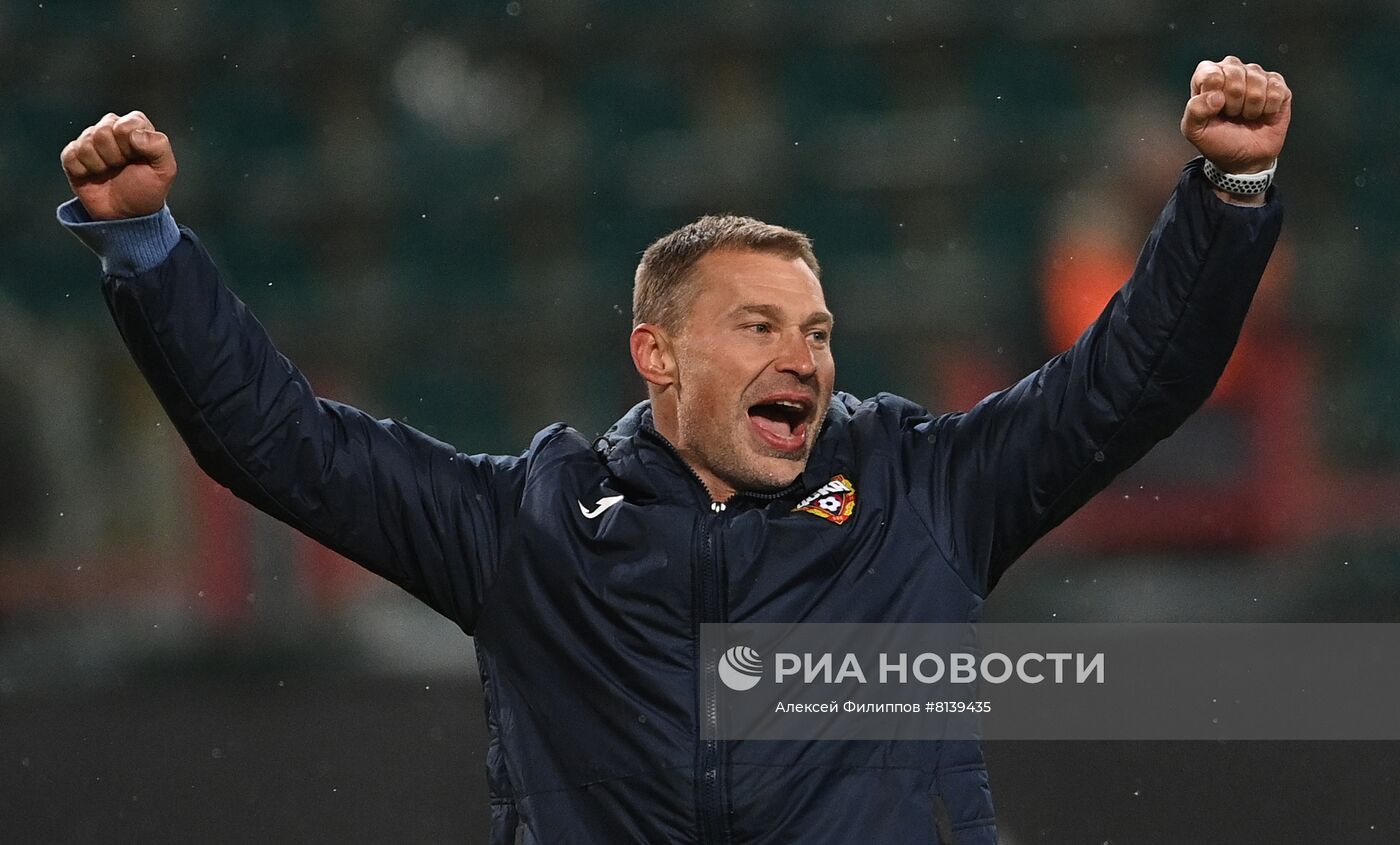 Тренер ЦСКА Василий Березуцкий радуется победе в матче 21-го тура чемпионата России по футболу среди клубов Премьер-лиги между командами ФК "Локомотив" (Москва) и ПФК ЦСКА (Москва).