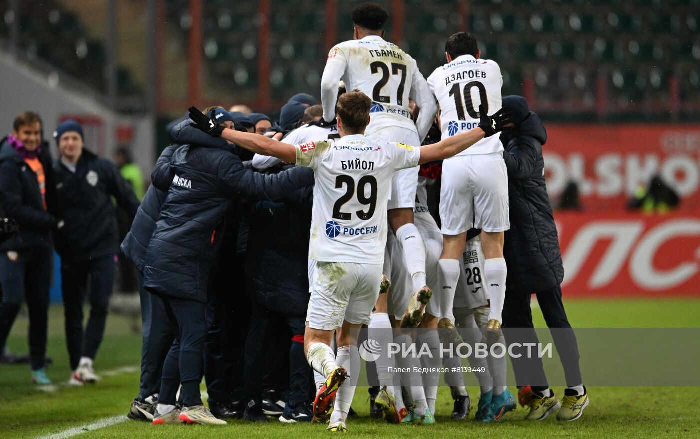 Игроки и тренеры ЦСКА радуются забитому голу в матче 21-го тура чемпионата России по футболу среди клубов Премьер-лиги между командами ФК "Локомотив" (Москва) и ПФК ЦСКА (Москва).