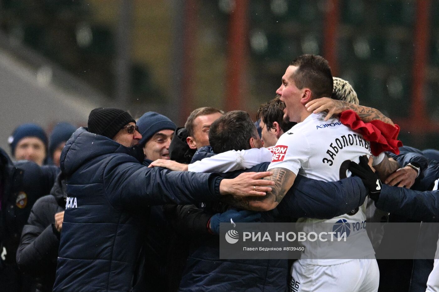 Игроки и тренеры ЦСКА радуются забитому голу в матче 21-го тура чемпионата России по футболу среди клубов Премьер-лиги между командами ФК "Локомотив" (Москва) и ПФК ЦСКА (Москва).