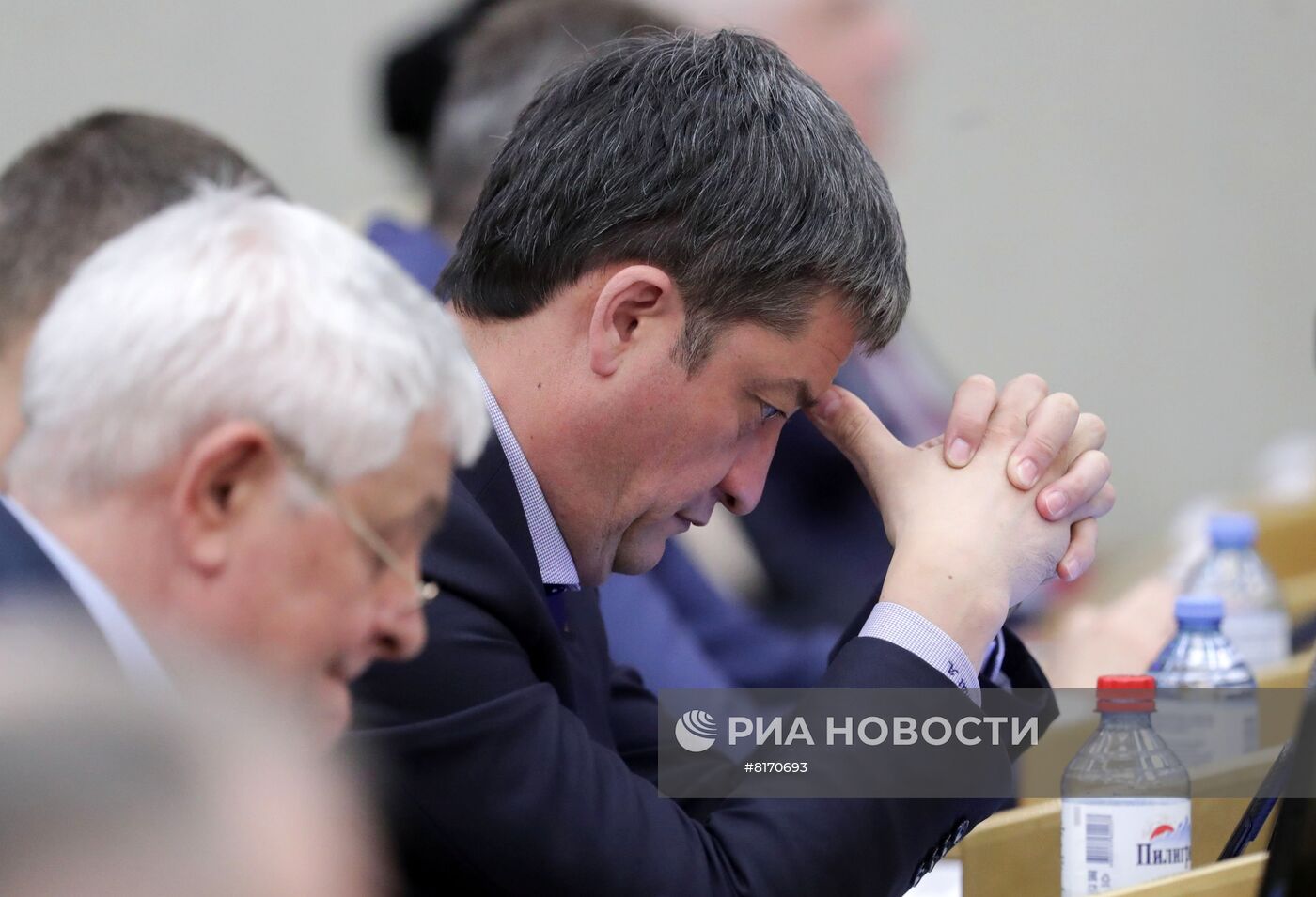 Председатель Госдумы РФ Вячеслав Володин выступает на пленарном заседании в Государственной думе РФ. В Госдуму РФ внесен к рассмотрению вопрос о продлении полномочий председателя Банка России (Центробанка) Эльвиры Набиуллиной на третий срок. Изображение является раздаточным материалом, предоставлено третьей стороной. Только редакционное использование. Запрет на архивирование, коммерческое использование, рекламную кампанию.