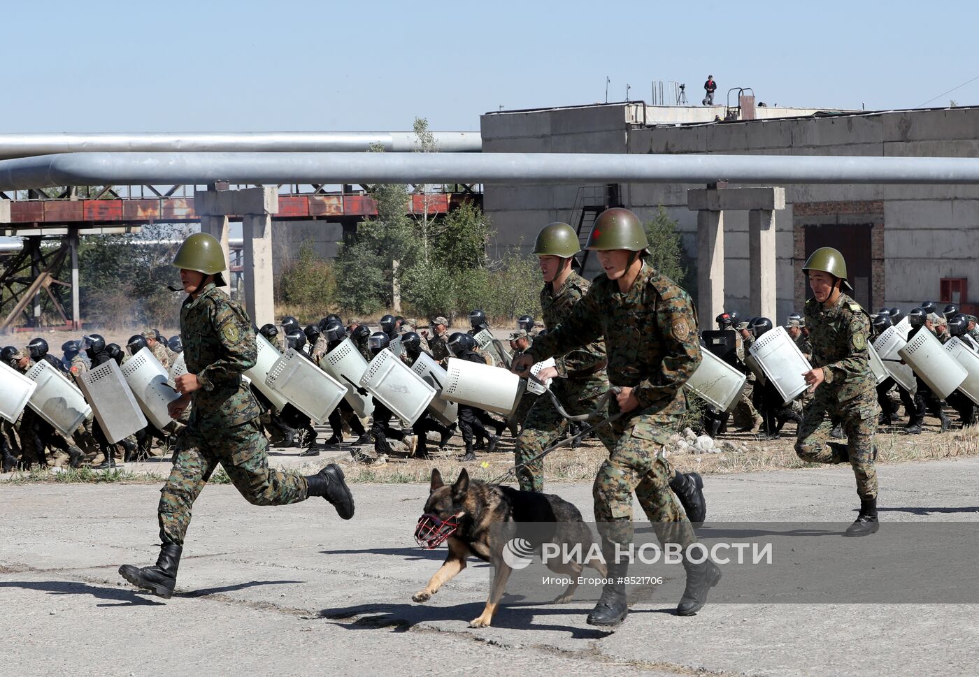Военнослужащие во время первых совместных антитеррористических учений Содружества Независимых Государств (СНГ) и Шанхайской организации сотрудничества (ШОС) "Евразия-Антитеррор - 2023" в Бишкеке. Учения проходят в рамках первой конференции стран-участниц СНГ по борьбе с терроризмом и экстремизмом.