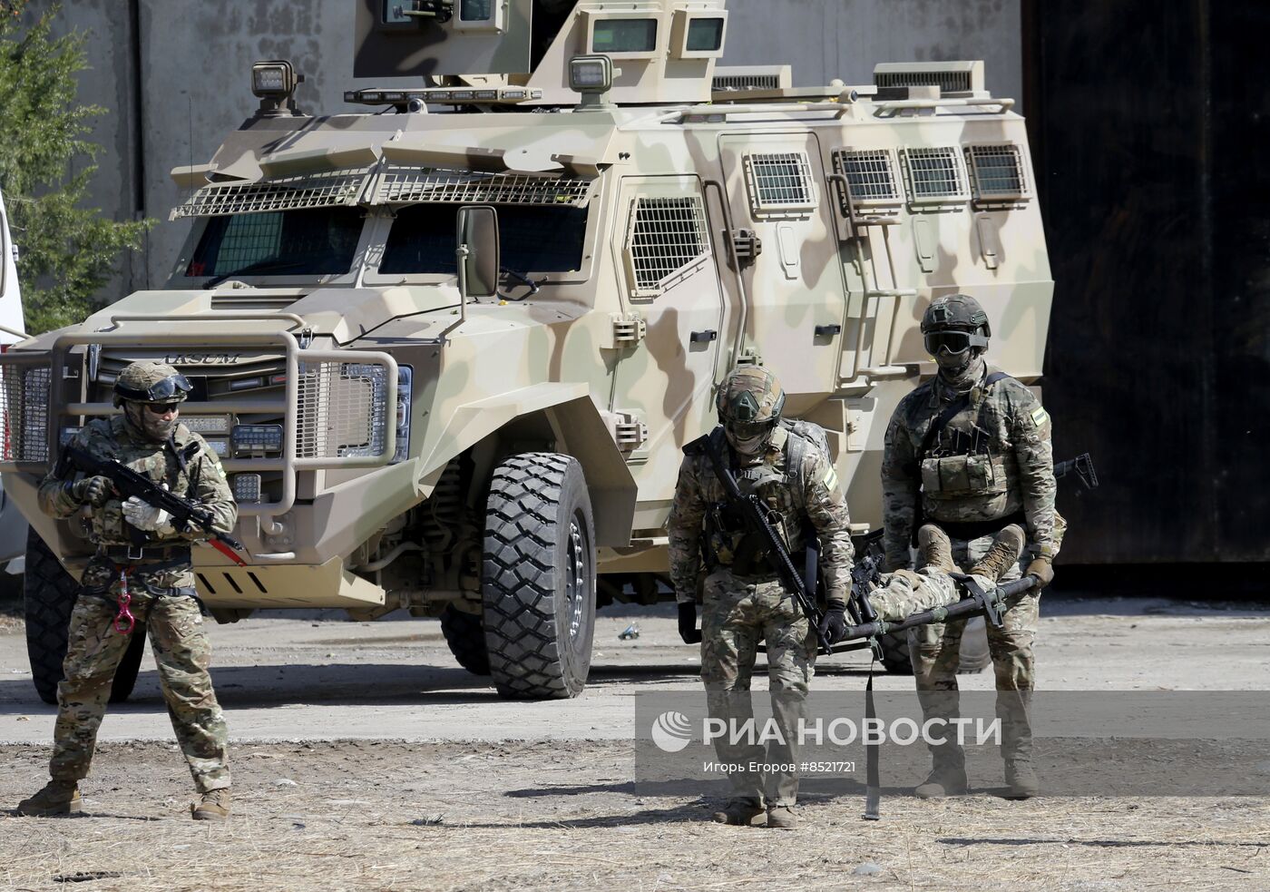 Сотрудники Государственного комитета национальной безопасности Киргизской Республики (ГКНБ) во время первых совместных антитеррористических учений Содружества Независимых Государств (СНГ) и Шанхайской организации сотрудничества (ШОС) "Евразия-Антитеррор - 2023" в Бишкеке. Учения проходят в рамках первой конференции стран-участниц СНГ по борьбе с терроризмом и экстремизмом.