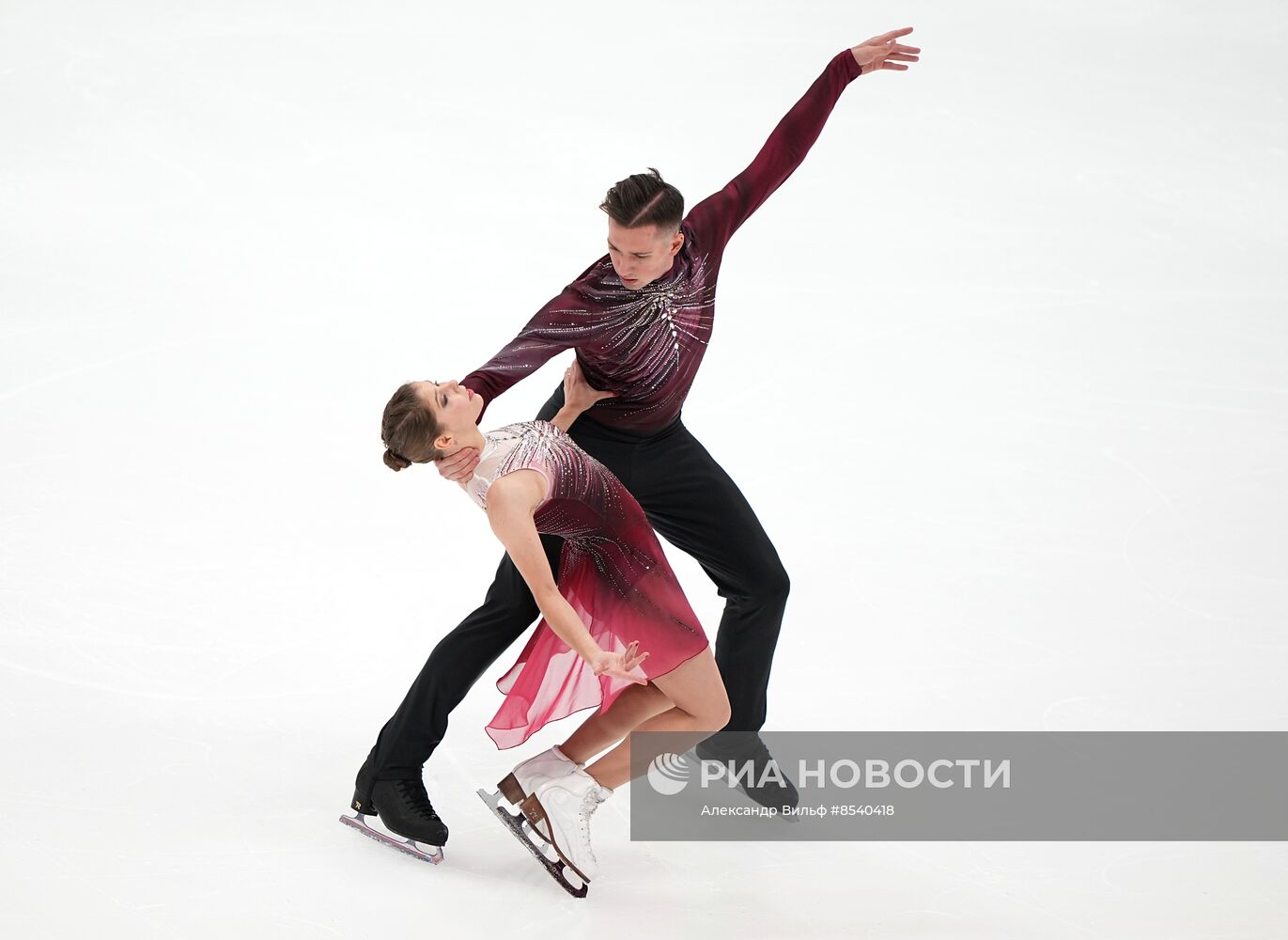Анастасия Мишина и Александр Галлямов выступают с короткой программой спортивных пар на II этапе Гран-при России "Сердце Сибири" по фигурному катанию в Омске.