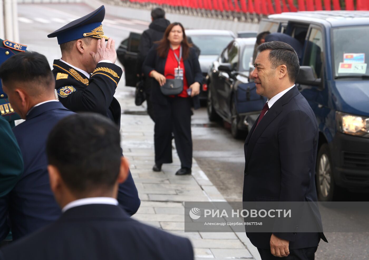 8 мая 2024. Президент Киргизии Садыр Жапаров (справа) и комендант Московского Кремля генерал-лейтенант Сергей Удовенко перед юбилейным заседанием Высшего Евразийского экономического совета (ВЕЭС) на саммите стран - участниц Евразийского экономического союза (ЕАЭС) в Москве. Заседание приурочено к десятилетию со дня подписания Договора о Евразийском экономическом союзе.