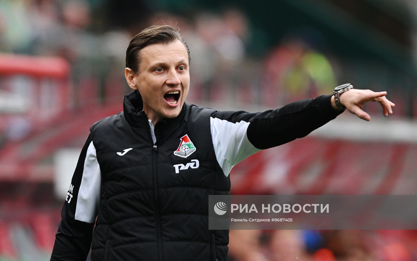 Главный тренер ФК "Локомотив" Михаил Галактионов на матче 29-го тура чемпионата России по футболу среди клубов Премьер-лиги между командами ФК "Локомотив" (Москва) и ФК "Факел" (Воронеж).