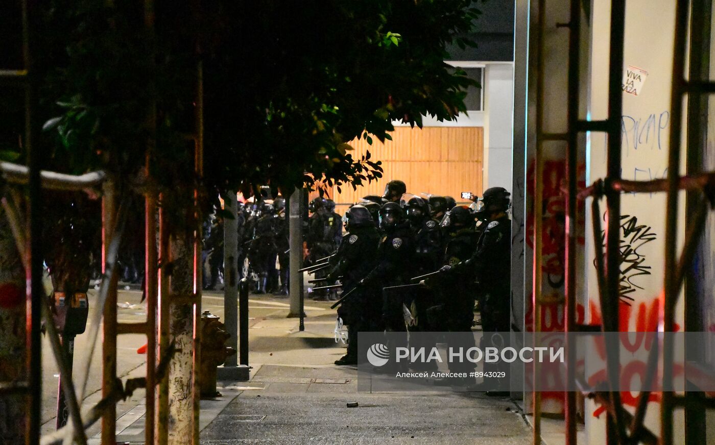 Акция протеста против миграционной политики Дональда Трампа в Лос-Анджелесе. Причиной стали рейды Иммиграционной и таможенной полиции США (ICE) против нелегальных мигрантов.