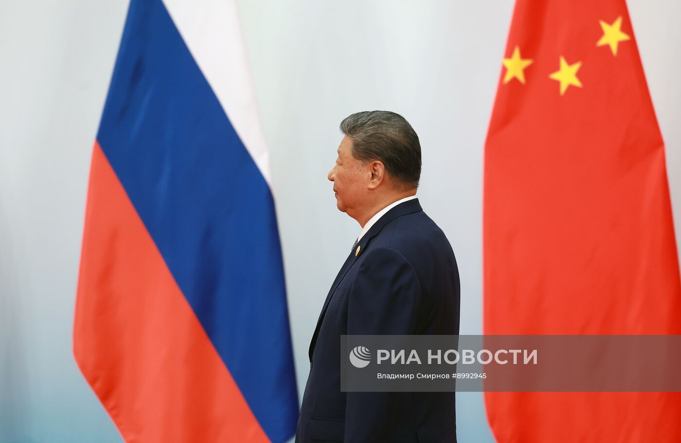 Председатель Китайской Народной Республики (КНР) Си Цзиньпин на церемонии официальной встречи глав делегаций - участников заседания Совета глав государств – членов Шанхайской организации сотрудничества (ШОС) в Тяньцзине.