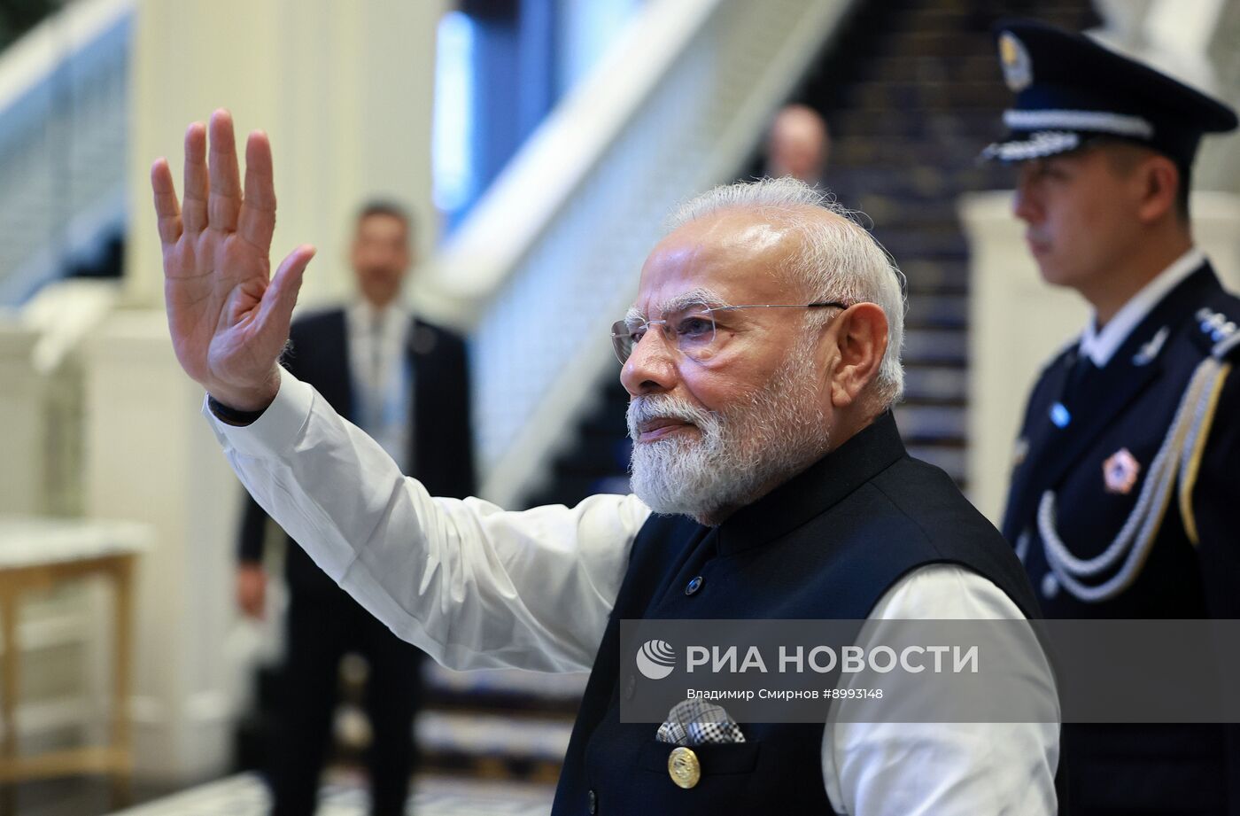 Премьер-министр Индии Нарендра Моди после встречи с президентом РФ Владимиром Путиным на полях саммита Шанхайской организации сотрудничества (ШОС) в Тяньцзине.