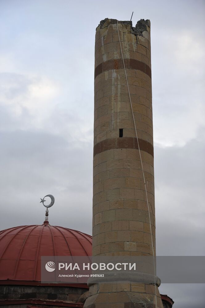 Минарет мечети в разрушенной землетрясением деревне Алакей.