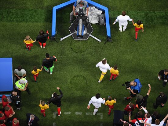 Работник стадиона перед началом полуфинального матча чемпионата мира по футболу между сборными Хорватии и Англии.11.07.2018#5586686