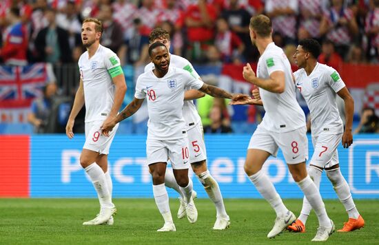 Игроки сборной Англии радуются забитому мячу мячу в полуфинальном матче чемпионата мира по футболу между сборными Хорватии и Англии.11.07.2018#5586746