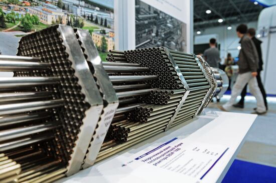 Укороченный макет тепловыделяющей сборки реактора ВВЭР-1000 топливной компании Росатома "ТВЭЛ" на Международной выставке технологического развития «Технопром-2018» в МВК "Новосибирск экспоцентр".27.08.2018#5618995