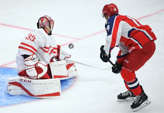 Вратарь ХК "Спартак" Юлиус Гудачек (слева) и игрок ПХК ЦСКА Богдан Киселевич в матче Кубка мэра Москвы между ПХК ЦСКА (Москва) и ХК "Спартак" (Москва). 22.08.2019#5981902