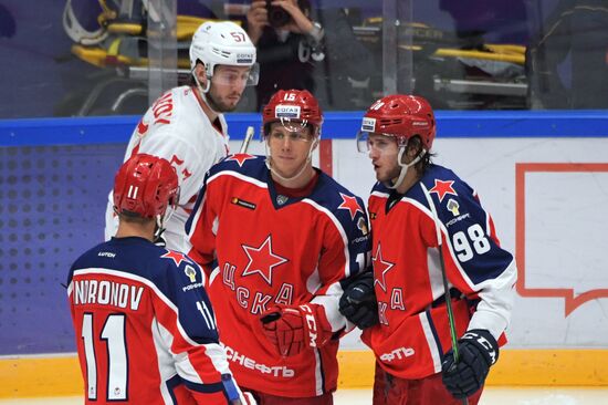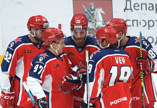 Игроки ПХК ЦСКА радуются забитой шайбе в матче Кубка мэра Москвы между ПХК ЦСКА (Москва) и ХК "Спартак" (Москва). 22.08.2019#5981677