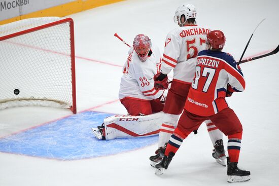 Вратарь ХК "Спартак" Юлиус Гудачек пропускает шайбу в матче Кубка мэра Москвы между ПХК ЦСКА (Москва) и ХК "Спартак" (Москва). В центре - автор гола игрок ПХК ЦСКА Кирилл Капризов.22.08.2019#5981781