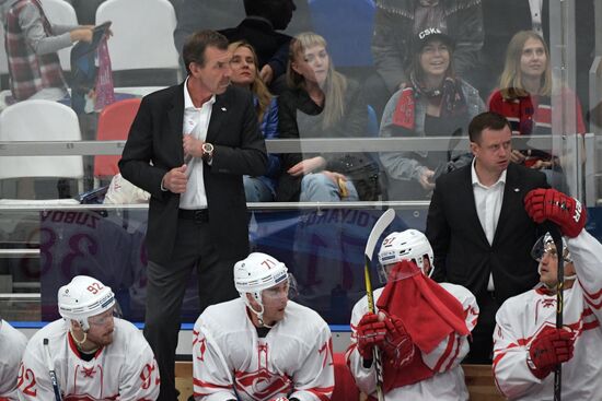 Главный тренер ХК "Спартак" Олег Знарок (слева на втором плане) в матче Кубка мэра Москвы между ПХК ЦСКА (Москва) и ХК "Спартак" (Москва). 22.08.2019#5981743
