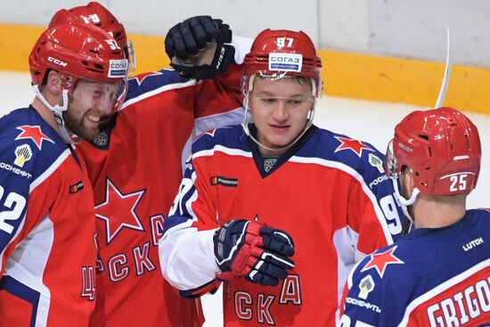 Игроки ПХК ЦСКА радуются забитой шайбе в матче Кубка мэра Москвы между ПХК ЦСКА (Москва) и ХК "Спартак" (Москва). В центре - автор гола игрок ПХК ЦСКА Кирилл Капризов.22.08.2019#5981785