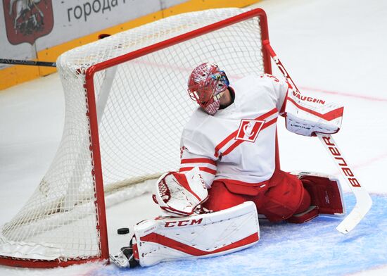 Вратарь ХК "Спартак" Юлиус Гудачек пропускает шайбу в матче Кубка мэра Москвы между ПХК ЦСКА (Москва) и ХК "Спартак" (Москва). 22.08.2019#5981906