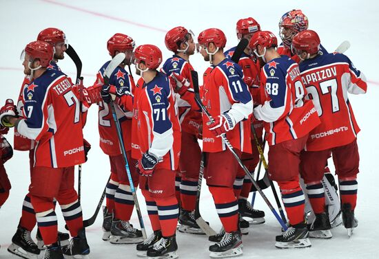Игроки поздравляют друг друга после матча Кубка мэра Москвы между ПХК ЦСКА (Москва) и ХК "Спартак" (Москва). 22.08.2019#5981953