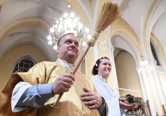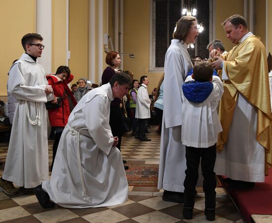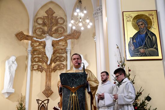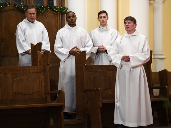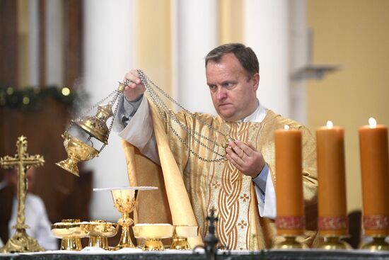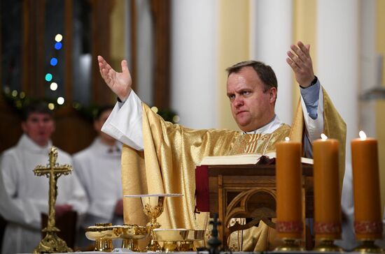 Священнослужители на Рождественской мессе в римско-католическом кафедральном соборе Непорочного Зачатия Пресвятой Девы Марии в Москве.24.12.2019#6116147