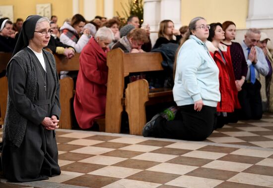 Верующие во время рождественской мессы в римско-католическом кафедральном соборе Непорочного Зачатия Пресвятой Девы Марии в Москве.24.12.2019#6116104