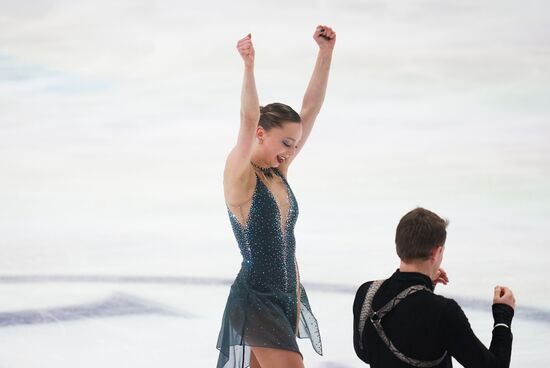 Александра Бойкова и Дмитрий Козловский (Россия) выступают с произвольной программой в соревнованиях среди пар на чемпионате Европы по фигурному катанию. 24.01.2020#6144780
