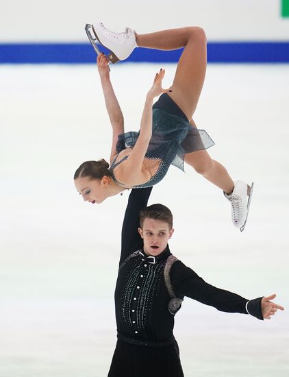 Дарья Павлюченко и Денис Ходыкин (Россия) выступают с произвольной программой в соревнованиях среди пар на чемпионате Европы по фигурному катанию.24.01.2020#6144827