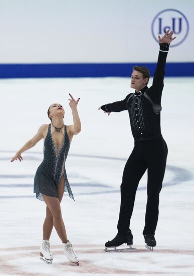 Дарья Павлюченко и Денис Ходыкин (Россия) выступают с произвольной программой в соревнованиях среди пар на чемпионате Европы по фигурному катанию.24.01.2020#6144833