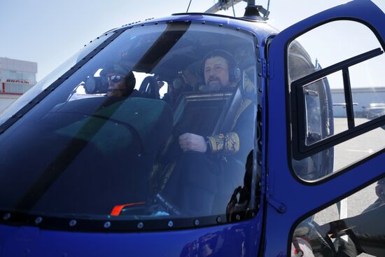 Митрополит Белгородский и Старооскольский Иоанн перед совершением воздушного крестного хода против коронавируса на вертолете над территорией Белгородской области. Митрополит облетел регион с тремя святынями: Тихвинской иконой Божией Матери из Борисовки, иконой святого Николая Ратного из белгородского Преображенского собора и ковчегом с частицами мощей святых: с мощами Иоасафа и частицей мощей Харлампия.24.03.2020#6203895