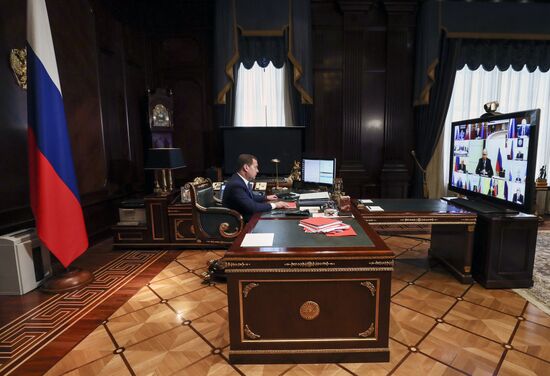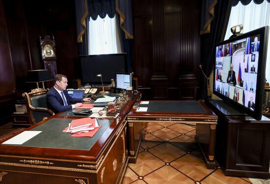 9 апреля 2020. Заместитель председателя Совета безопасности РФ Дмитрий Медведев принимает участие в заседании комиссии по вопросам военно-технического сотрудничества с иностранными государствами. Заседание с участием руководителей ряда предприятий оборонно-промышленного комплекса провел президент РФ Владимир Путин в режиме видеоконференции.09.04.2020#6217139