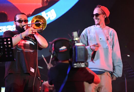 Рэп-исполнитель Timur Check (Тимур Саед-Шах) и группа Wild Brass выступают на Международном джазовом фестивале Koktebel Jazz Party - 2020 в Крыму.22.08.2020#6313893
