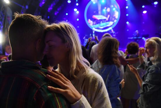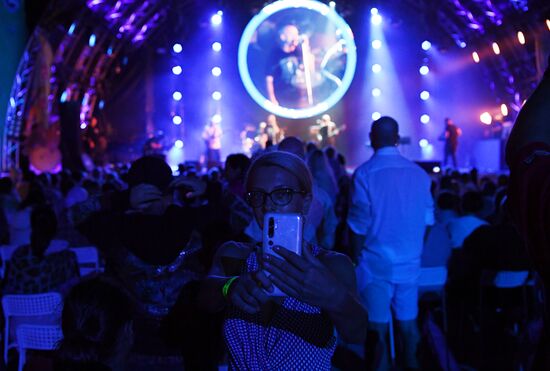 Посетители танцуют во время выступления музыканта, солиста группы "Моральный кодекс" Сергея Мазаева на Международном музыкальном фестивале Koktebel Jazz Party - 2020 в Крыму.22.08.2020#6314122